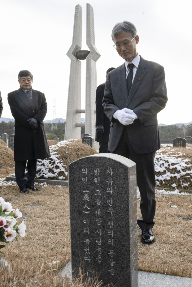 이후 故 한승헌·홍남순 변호사 묘지와 무명열사 묘지를 둘러보고 추모관도 참배했다.