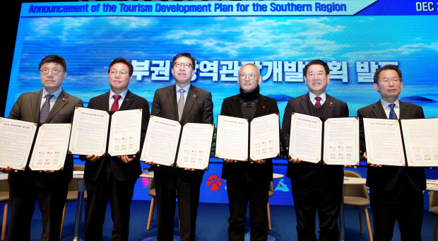 25일 문화체육관광부에 따르면 유인촌 문화체육관광부 장관은 지난 22일 경남 통영국제음악당에서 광주시, 전남도, 부산시, 울산시, 경남도 등 남부권 5개 시·도와 10년간 총 3조원을 투자하는 ‘남부권 광역관광개발 업무협약’을 체결했다.