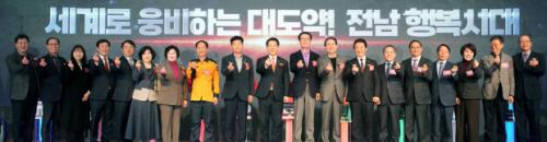 전남도는 27일 목포 신안비치호텔에서 김영록 전남지사, 박우량 신안군수, 향우회, 공사, 출연기관 등 200여명이 참석한 가운데 전남지역 고향사랑 기부금 100억 원 달성 및 전남 사랑애(愛) 서포터즈 43만 명 돌파를 기념하고, 고향사랑 실천을 다짐하는 전남 한마음 고향사랑 응원대회를 개최했다. 〈전남도 제공〉