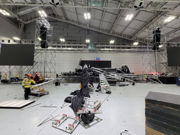 28일 광주시와 광주서부소방 등에 따르면 이날 오후 6시 50분께 광주시 서구 치평동 김대중컨벤션센터에서 콘서트 무대 설비가 무너졌다.