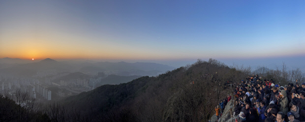 새벽 추운 날씨에 중무장을 하고 산을 오른 지역민들은 해가 뜨자 상기된 얼굴로 새해를 밝히는 해를 휴대전화에 담았다.