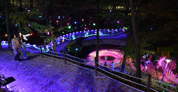 광주시가 남구 사직공원 옛 동물원에서 시작해 사직전망대까지 약 830m 산책로에 ‘사직 빛의 숲’을 조성해 많은 시민들이 야경과 함께 미디어아트를 관람하고 있다. ‘사직 빛의 숲’은 유네스코 미디어아트 창의도시 광주에 새로운 야경 명소로 꼽히고 있다. /나명주 기자 mjna@kwangju.co.kr |
