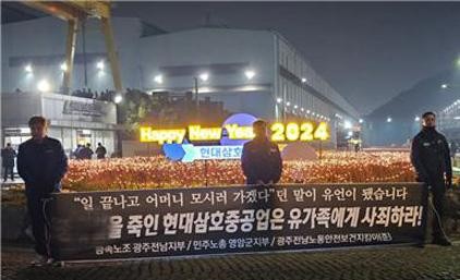 전국금속노동조합 광주전남지부는 8일 성명서를 통해 “지난 5일 현대삼호중공업·하청업체와 유족이 합의했다”면서 “아르곤 가스 용접작업에 대한 대책을 마련해 같은 사고가 반복되지 않아야 한다”고 강조했다.