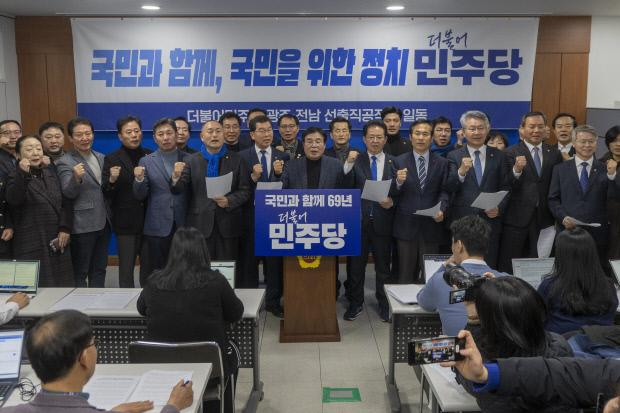 기자회견에는 이병훈·신정훈 광주시·전남도당 위원장과 광주지역 송갑석·이형석·이용빈·조오섭·의원, 전남지역 김원이·김승남·김회재 의원, 시·구의원 등이 참여했다.