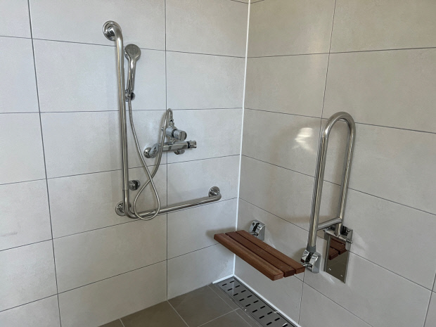 | 휠체어 장애인을 위한 샤워기는 한 개에 불과했다. |
