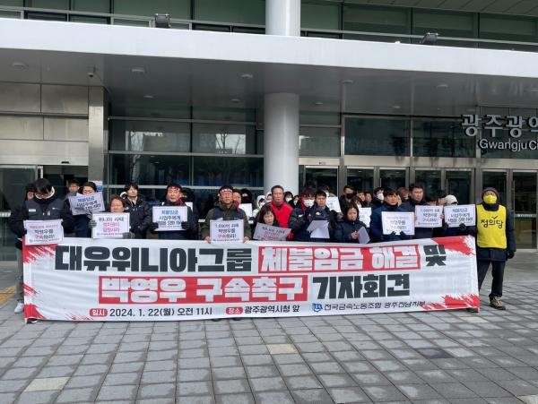 이어 노조는 “임금체불 정리약속을 지키지 않는 다면 경영진 구속을 위한 집회를 지속할 예정”이라면서 “대유위니아 노동자는 광주지역 노동자로 광주시가 적극 사태 해결에 나서야 한다”고 덧붙였다.