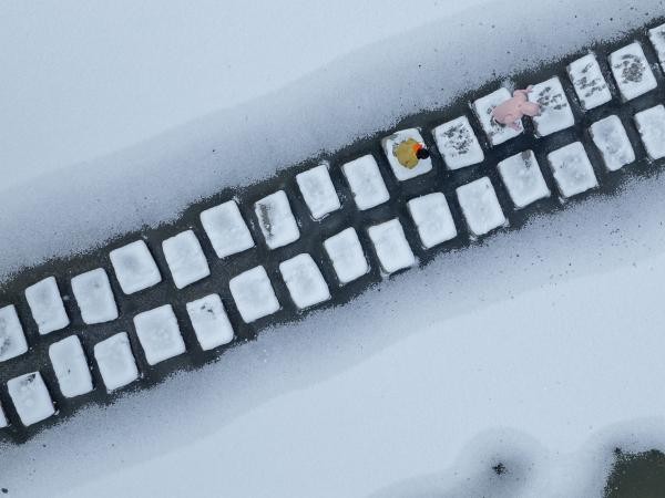 광주와 전남지역에 많은 눈이 내린 24일. 담양 메타스퀘어길 산책로에도 하얀 눈이 소복이 쌓여 있다. 시민들이 눈 쌓인 징검다리를 조심스레 거닐고 있다 ./김진수 기자 jeans@kwangju.co.kr