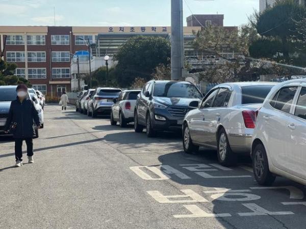 서구 서광초등학교 앞 스쿨존에서는 방학임에도 일부 학생들이 학교 안팎을 오가고 있었지만 차량들은 학교 앞 도로 빈곳을 찾아 주차하기 바빴다.
