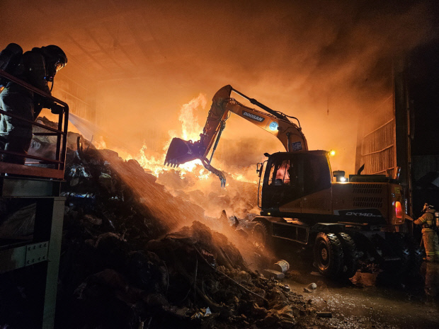광양 폐기물 적재시설에서 화재…6시간 30분만에 진화