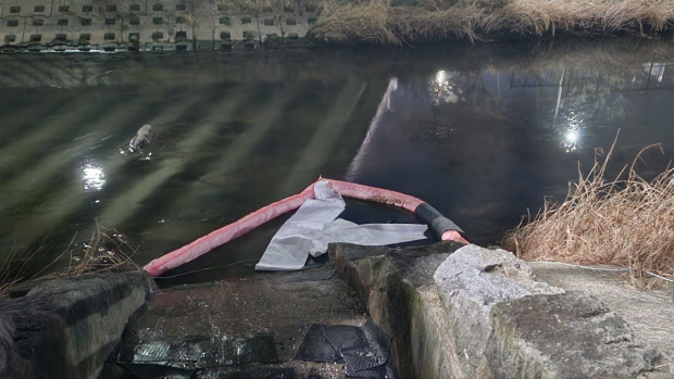 광주시 광산구 수완지구 풍영정천에 기름이 유출돼 긴급 방제가 이뤄졌다.