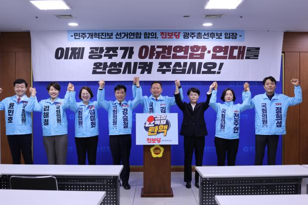 후보자들은 이날 광주시의회 브리핑룸에서 기자회견을 열고 “다음달 3일 윤석열 심판에 대한 민심을 받들어 ‘야권연합 비례정당’이 출범한다”며 “지역구 또한 야권 연대로 윤석열 세력과의 1대1 구도로 심판하기로 했다”고 말했다.