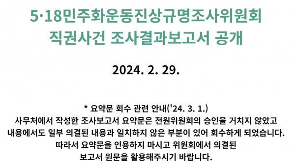 진상조사위는 지난달 29일 밤 11시께 일부 조사결과서와 조사보고서 요약문을 공개했다가 하루만에 공지를 올리고 다시 요약문을 회수했다.