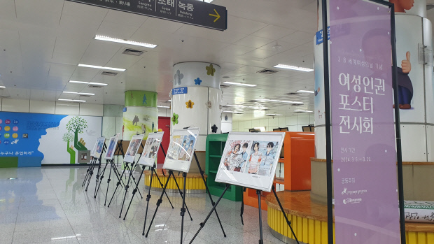 8일 국가인권위원회 광주인권사무소(소장 최혜령)에 따르면 오는 29일까지 광주지하철 김대중컨벤션센터역(마륵)에서 (사)광주여성의전화와 함께 여성 인권 콘텐츠 전시회를 개최한다.