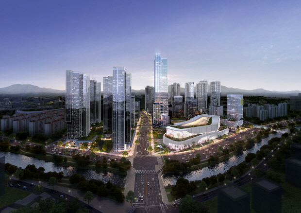 ‘더현대 광주’가 옛 전방·일신방직 공장터 개발사업 민간 사업자와 부지 매매계약을 체결하고, 전국 최고 수준의 복합쇼핑몰 건립에 나선다. 개발사업자측이 제시한 옛 전방·일신방직 공장터 개발 투시도. <광주시 제공>