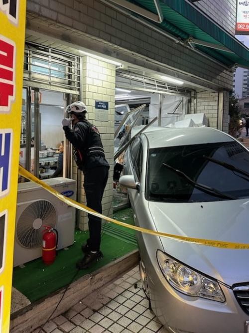 차량은 가게 외벽 유리창을 깨고 가게 안까지 들어 간 것으로 조사됐다.
