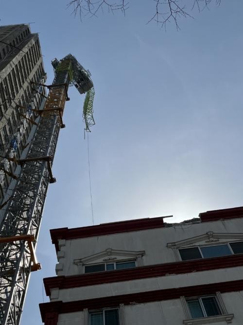 현재 공사 현장 작업은 중단된 상태로, 꺾인 타워크레인은 강풍으로 인해 23일 해체 작업에 돌입할 계획이다.