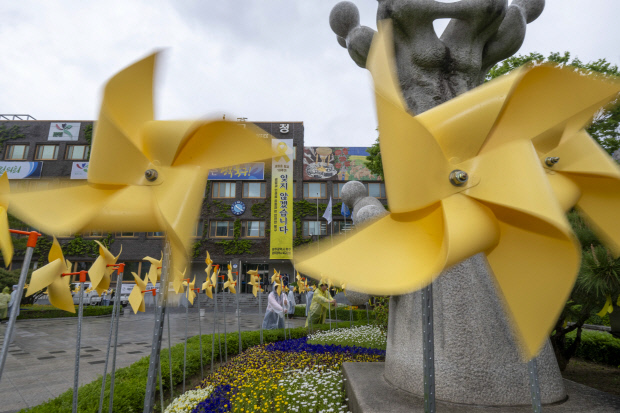15일 오후 4시 30분 광주시 남구 주월동 푸른길 광장에서는 ‘세월호 10주기 기억문화제’가 개최됐다. 광주시 북구도 구청 앞 광장에 노란 바람개비와 리본을 설치해 추모의 마음을 전했다.