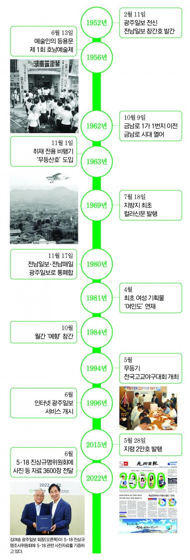 1963년 11월에는 취재전용 비행기 ‘무등산호’를 도입했으며, 1966년에는 1개월에 걸쳐 월남전 종군기자를 특파하기도 했다. 1969년 7월16일 지방지 최초로 컬러 신문 시대를 열고 종합매스컴센터를 구축했다.