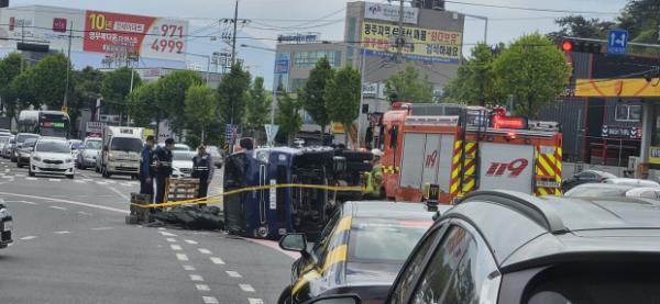 광주 서구 마륵동 도로에서 1t 화물차 전도돼 교통 통제