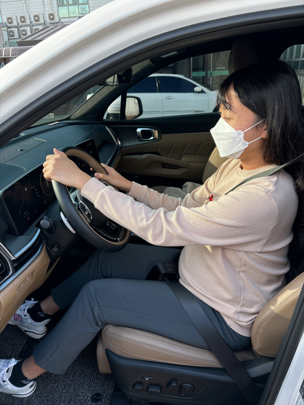 | 강진지역 한 임산부가 올해 2월부터 강진군이 지원하는 임산부 전용 안전띠를 매고 승용차에 탑승하고 있다.<광주일보 자료사진> |