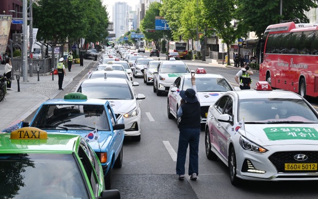 20일 오후 44주년 5·18 광주민주화운동 기념 ‘민주기사의 날’ 행사에 참여한 택시기사들이 광주시 북구 무등경기장에서 동구 금남로 옛 전남도청까지 1980년 5월 차량 시위를 재현하고 있다. /나명주기자mjna@kwangju.co.kr