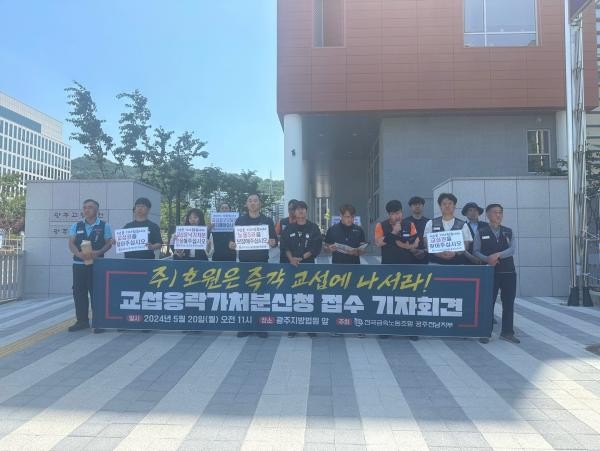 호원노조는 20일 광주지법 앞에서 기자회견을 열고 “호원이 단체교섭을 하지 않고 있으니 법원이 빠른 판단을 내려달라”고 촉구했다.