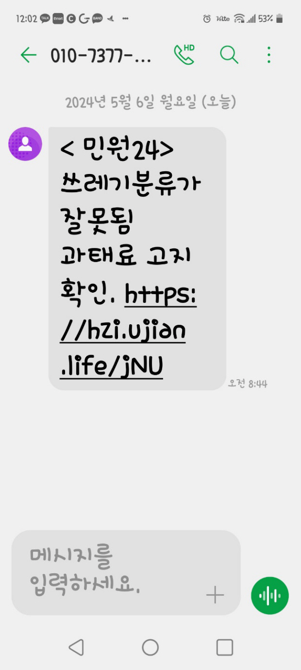 “쓰레기 분류 잘못, 과태료 확인하라” 속여 전화번호 입력하면 정보 빼내