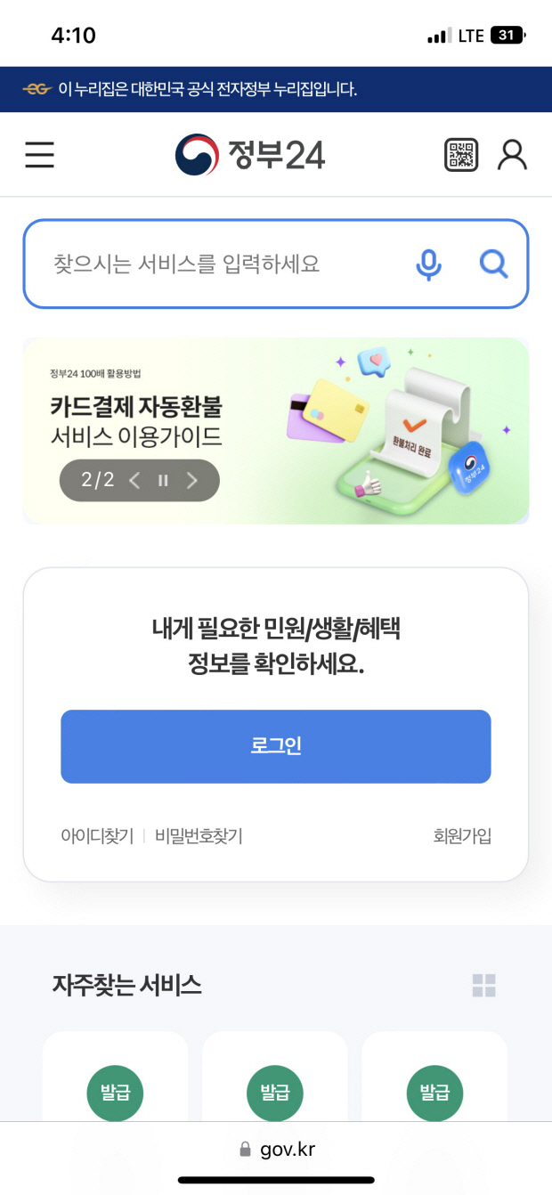 | 정상적인 정부24 홈페이지.<독자 제공> |