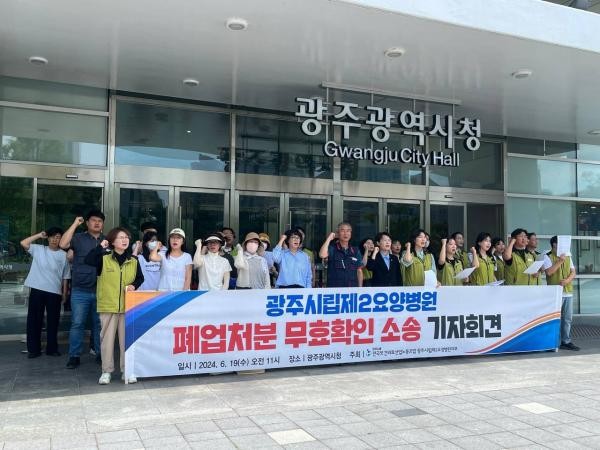 전국보건의료산업노동조합 광주·전남지역본부는 19일 오전 광주시청에서 앞에서 기자회견을 열고 “제대로 된 절차와 공지가 없는 광주시립제2요양병원 폐원은 무효”라며 법정다툼을 예고했다.