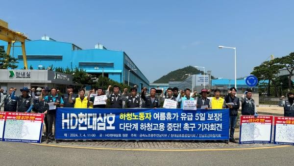 노조는 “HD현대삼호 정규 노동자들의 여름 휴가가 유급 10일로 책정됐다는 점에서 동일한 휴가를 받지 못하더라도 정규직의 절반이라도 유급휴가를 지급해야 한다”고 설명했다.