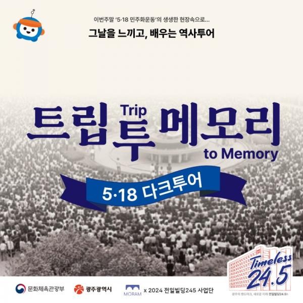 문화체육관광부와 광주시, 2024전일빌딩245사업단(위탁 수행사 모람 플랫폼)은 전일빌딩245 ‘트립 투 메모리’ 5·18 다크투어 참여자를 모집 중이라고 9일 밝혔다.