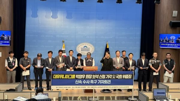 금속노련은 2일 오후 국회 소통관에서 기자회견을 열고 “대유위니아 임금체불 문제의 근원인 박 회장의 보석 요구를 기각하고 위증죄에 대한 수사를 진행하라”고 요구했다.
