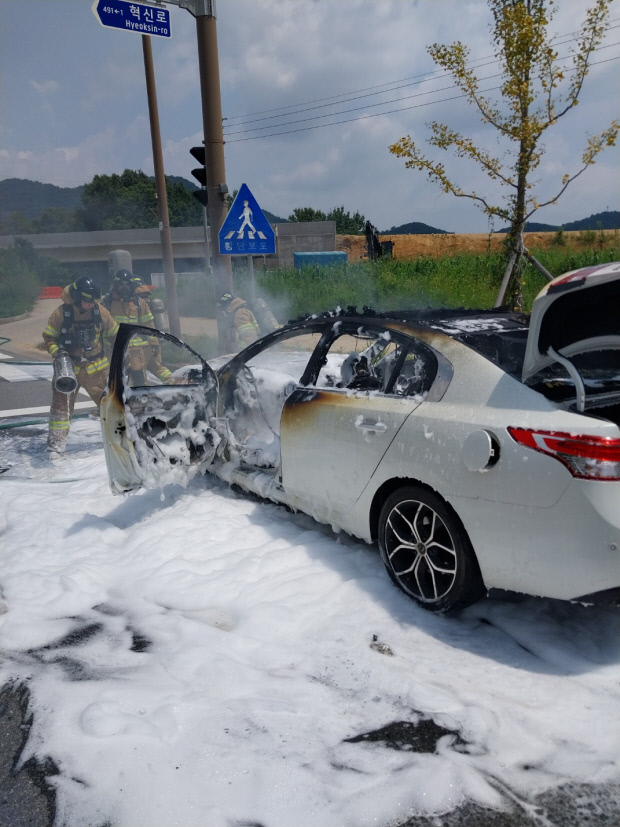 나주에서 주행 중이던 승용차에서 화재가 발생해 운전자가 급히 대피했다.
