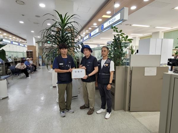 전국금속노조 광주·전남지부 금속노조위니아전자지회 소속 조합원들이 지난 16일 박영우 대유위니아 그룹 회장의 재판이 열린뒤 광주지방법원에 엄벌 탄원서를 제출하고 있다. <전국금속노조 대유위니아 노조 제공>