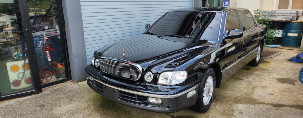 이 차량은 1996년 출시된 현대 자동차 플래그십 세단으로 국산 첫 특수 방탄 경호차량이다. 1997년 고(故) 정주영 현대그룹 명예회장이 당시 대통령 후보였던 김 전 대통령과 당시 한나라당 이회창 총재에게 유세지원용으로 전달했으며 이듬해 김정일 국방위원장에게도 선물한 것으로 알려져 있다.