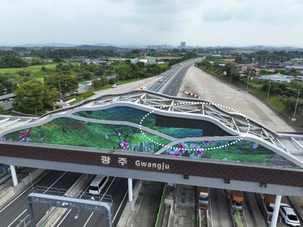 첫 인상 보여주는 광주요금소 미디어아트 ‘무등의 빛’ 패널 일부 고장