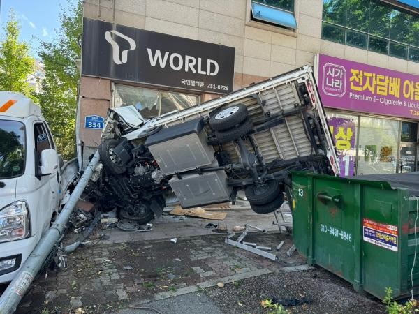 28일 광주북부경찰에 따르면 이날 오전 10시 40분께 광주시 북구 오치동에서 70대 운전자 A씨가 몰던 화물차가 상가로 돌진했다.