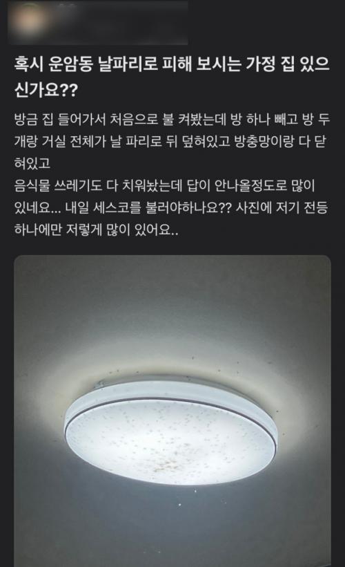 | 광주지역 맘카페에 멸구류가 집 안으로 들어와서 피해를 입었다는 글과 사진들이 올라오고 있다. <인터넷 커뮤니티 갈무리> |