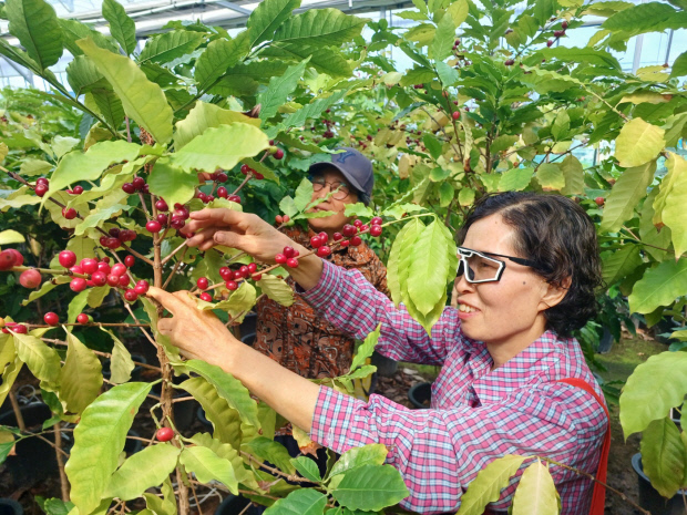 | 지난 8월 지역민들이 커피 수확 체험에 참여해 커피 열매를 수확하고 있다. |
