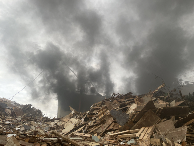 소방당국은 목재 폐기물을 가공하는 기계의 전선에서 불꽃이 튀면서 화재로 번진 것으로 추정 중이다.