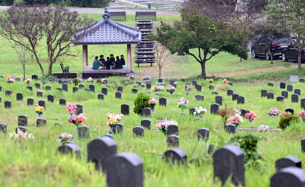 [오늘의포토] 추석연휴 앞두고 ‘雨中 성묘’