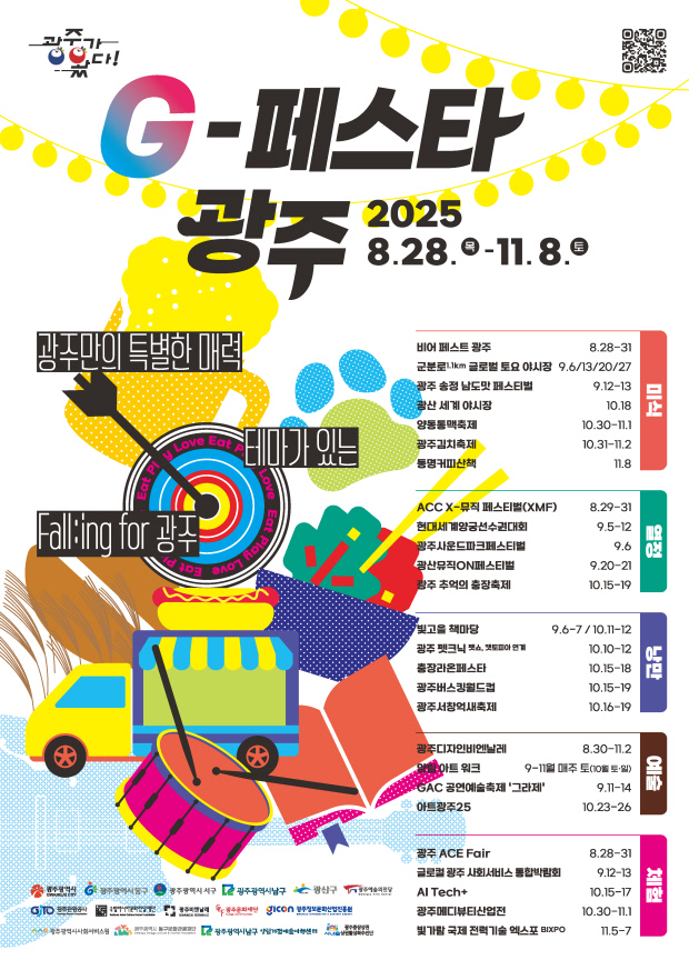 광주의 가을이 통합축제 브랜드 ‘2025 G-페스타 광주’로 묶이며 10월부터 11월 초까지 14개 프로그램이 잇따라 진행된다.