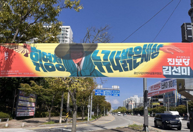 진보당 광주시당이 우리 전통 미감을 살린 현수막 시리즈로 시민 눈길을 끌고 있다.