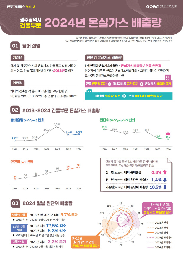 광주기후에너지진흥원은 6일 이같은 내용이 담긴 ‘광주 건물 온실가스 2024’을 공개했다.