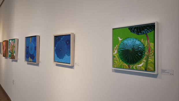 전시실에서 만나는 작품들은 동양적 미감과 현대적 감각이 절묘하게 조화를 이룬 연꽃들로 그윽하다. 화려하면서도 강렬한 색감은 모진 세월을 견뎌낸 시간이 선물한 은전이다. 무엇보다 진흙이라는 질곡의 환경을 견뎌내고 피워내는 향기는 무엇에 비할 데 없이 은은하다.