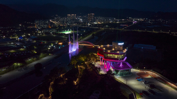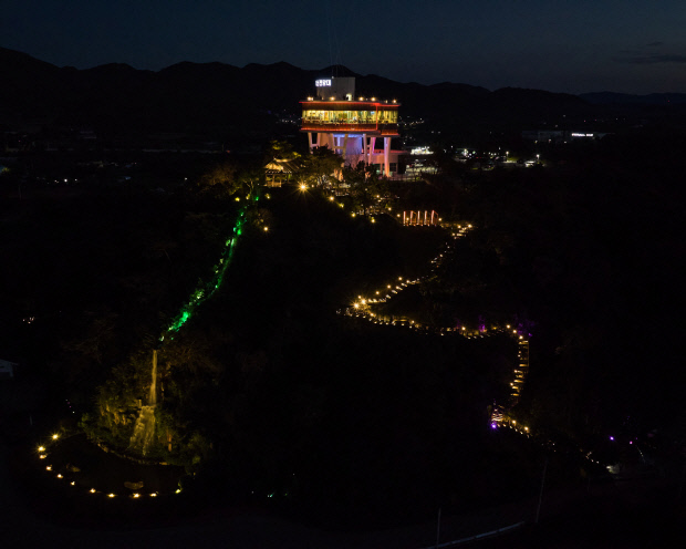 전망대 아래에서 개미산 전망대를 바라본 풍경도 이국적이다. 특히 찬란한 조명과 함께 우렁찬 소리를 내며 떨어지도록 조성한 인공폭포는 화순의 야경을 더욱 돋보이게 하는 키 포인트다.