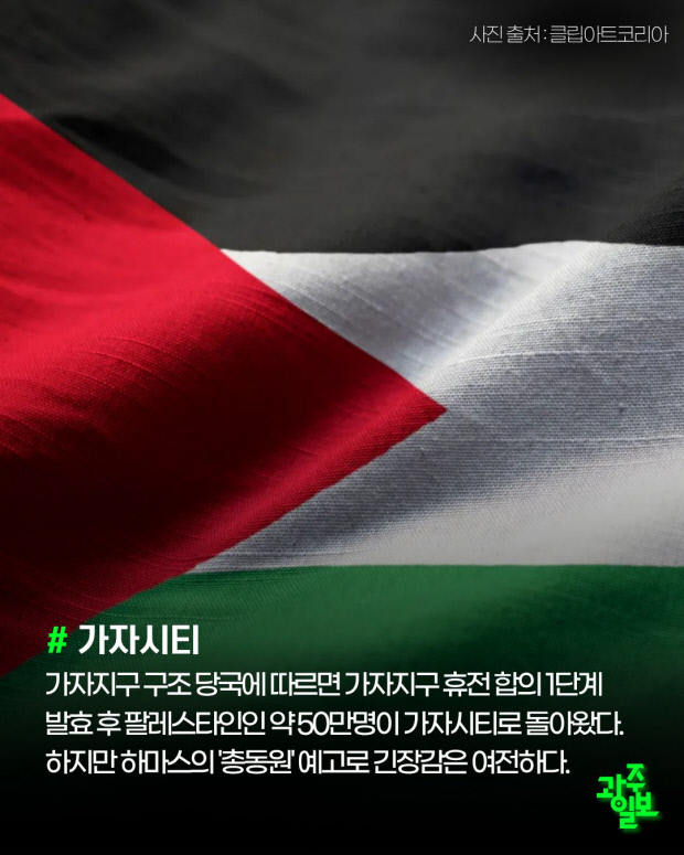 가자지구 구조 당국에 따르면 가자지구 휴전 합의 1단계 발효 후 팔레스타인인 약 50만명이 가자시티로 돌아왔다. 하지만 하마스의 ‘총동원’ 예고로 긴장감은 여전하다.