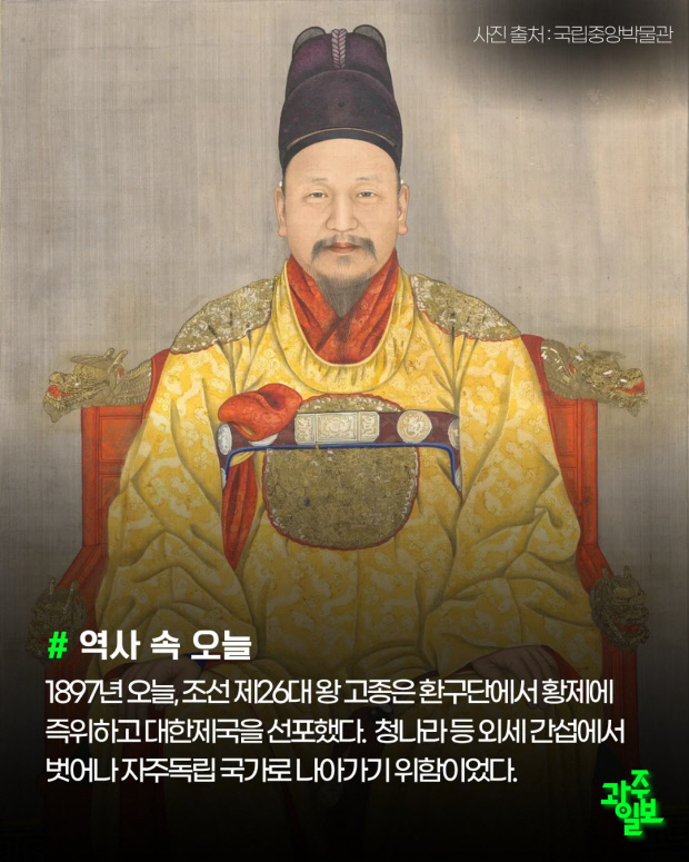 1897년 오늘, 조선 제26대 왕 고종은 환구단에서 황제에 즉위하고 대한제국을 선포했다. 청나라 등 외세 간섭에서 벗어나 자주독립 국가로 나아가기 위함이었다.