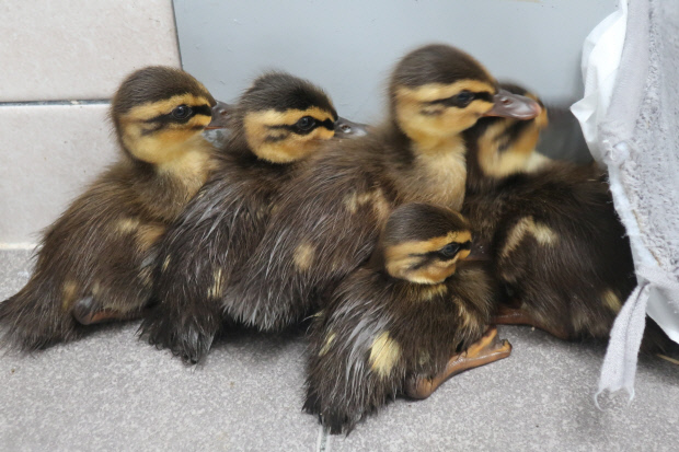 미아상태로 구조된 흰뺨검둥오리 가족. |