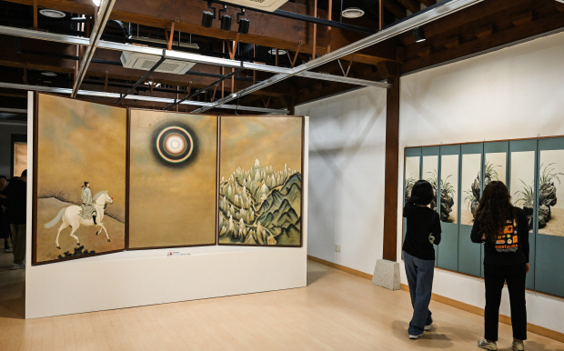2관 실내체육관 전시는 ‘스타벅스에서 산수화까지’라는 주제처럼 과감했다. 일상의 키워드와 데이터, 전통 산수화가 한 화면 안에 뒤섞이며 수묵의 동시대적 가치를 탐색했다. 동양이 아닌 낯선 문화권의 시선이 덧입혀지면서 세계적 언어로 확장되는 순간이었다.